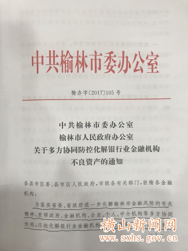 中共榆林市委办公室 榆林市人民政府办公室 关于多方协同防控化解银行业金融机构不良资产的通知(节选)