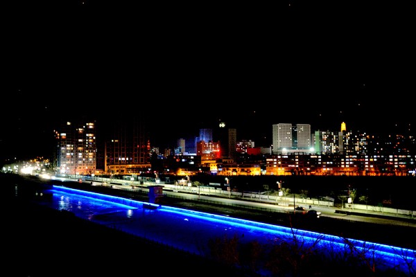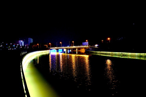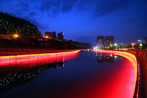 傍晚时分,当你迎着轻柔的晚风、听着路边音响里传出的优雅音乐、顺着沿河文化长廊漫步在河滨公园,你会发现,经橡皮坝调节后的河面在霓虹灯的映衬下波光粼粼,西沙芦河大桥栏杆上的发光脸谱与对面智慧城楼里的万家灯火遥相呼应,迎宾路上的过往车灯与砌护堤两壁上的亮化带竞相穿梭,动着的还有那跑步健身的市民、卿卿我我的情侣、追逐打闹的孩童、舞步翩跹的大妈……就是这一切默默地将小城扮装的美仑美奂、活力四射,真是美极了!