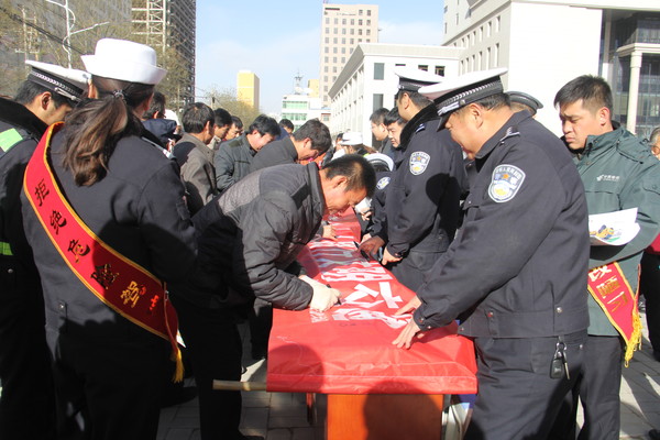 下午1点,交警大队和文明办的工作人员在人流量较为集中的中心广场前设置“12.2”交通安全宣传点。通过摆放真实的交通安全宣传展板、发放各类宣传资料、解答群众咨询等多种方式,向广大群众讲解了学习交通安全知识、遵守交通规则的重要性,解答了过往群众提出的驾驶员管理、车辆管理、安全出行等方面的问题。同时,倡议过往群众签名共同抵制交通违法、践行文明交通,积极引导广大群众安全文明出行。